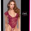Spitze mit sinnlichen Extras! Bordeaux-roter, knapp geschnittener Stringbody ouvert von Cottelli LINGERIE aus weicher Stretch-Blütenspitze. Verführerisch in Szene gesetzt mit Schulterspitze, weißen Perlenketten und roségoldfarbenen Details. Rundum weich und elastisch anschmiegsam für hohen Tragekomfort. Die Perlenketten an den soften Cups und die stimulierende Perlenkette im einladend offenen Schritt können vom Spitzenbody auch abgenommen werden. Die Träger sind im freien Rücken passend verstellbar. 90% Polyamid, 10% Elasthan.