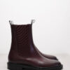 Dieser elegante Ankle Boot aus bordeauxfarbenem Kalbleder kombiniert schlichte Form mit besonderem Farbstatement. Das warme Bordeaux verleiht dem minimalistischen Design Tiefe und Raffinesse, während das dezente Schnallen-Detail am Schaft einen stilvollen Akzent setzt. Die robuste Profilsohle sorgt für Bodenhaftung, ein seitlicher Reißverschluss erleichtert das Anziehen. Ein vielseitiger Begleiter für stilbewusste Looks – von urban bis elegant.