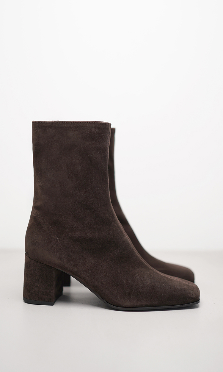 Diese elegante Stiefelette aus hochwertigem dunkelbraunem Veloursleder überzeugt durch ihre klare, schlichte Form und eine feminine Ausstrahlung. Der mittelhohe Blockabsatz sorgt für angenehmen Tragekomfort, während die schmale Silhouette und der leicht spitze Schaft das Bein optisch strecken. Vielseitig kombinierbar – ob zu Denim, Strick oder eleganter Officewear – ist dieses Modell ein stilvoller Begleiter für Herbst und Winter. Das weiche Leder schmiegt sich angenehm an den Fuß und macht die Stiefelette zu einem Liebling im Alltag wie auch zu besonderen Anlässen.