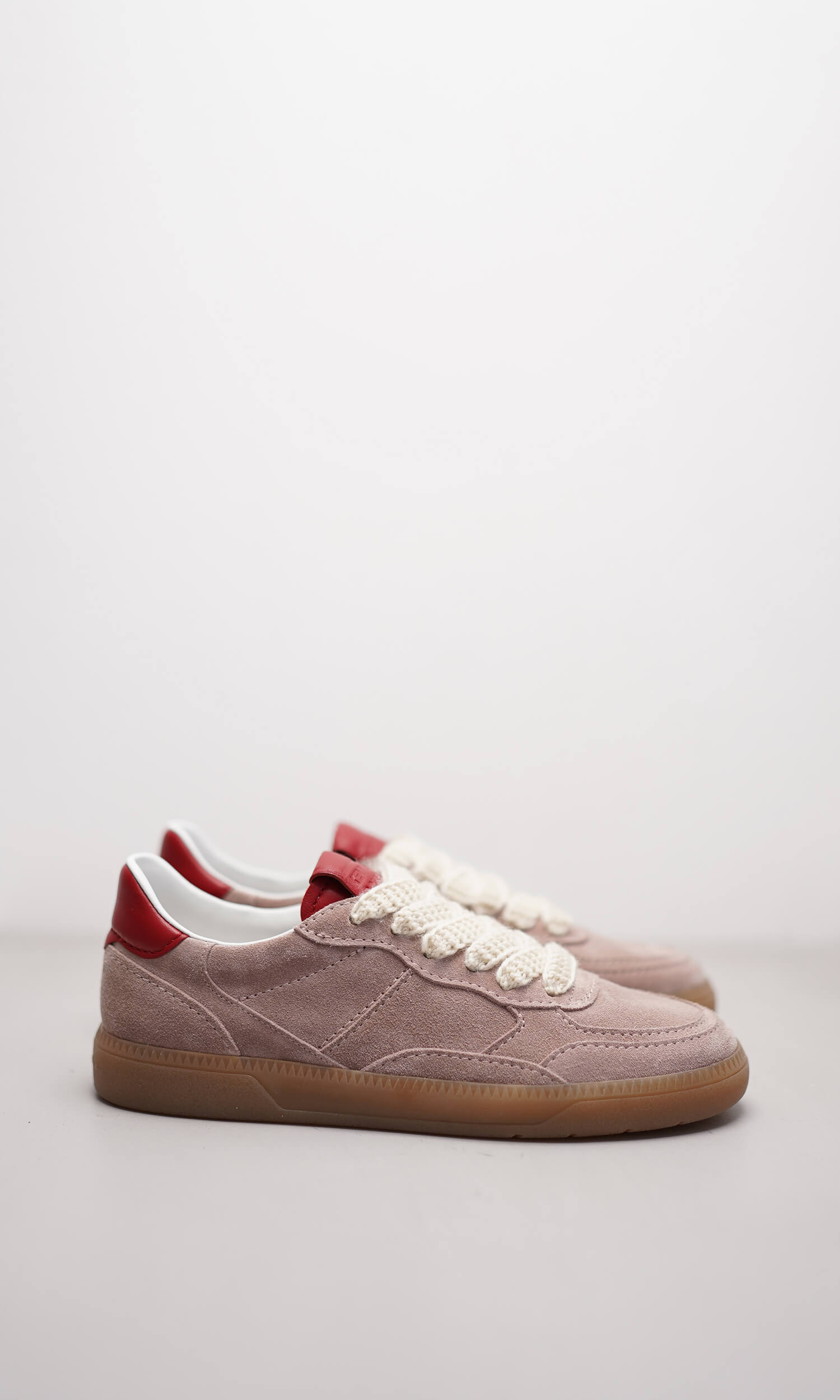 Der hochwertige Sneaker POP vereint sportiven Chic mit edler Materialwahl – perfekt für stilbewusste Trendsetterinnen. Das feine Veloursleder in zartem Rosé wird durch markante Details aus rotem Nappaleder geschmackvoll akzentuiert und sorgt für einen femininen, aber kraftvollen Look. Die gestrickten Senkel verleihen dem Schuh nicht nur eine moderne Note, sondern auch einen natürlichen Charakter. Ob lässig zur Jeans oder als Kontrast zu eleganten Outfits – dieser Sneaker ist ein stilvoller Begleiter mit sportlichem Herz und luxuriösem Anspruch.