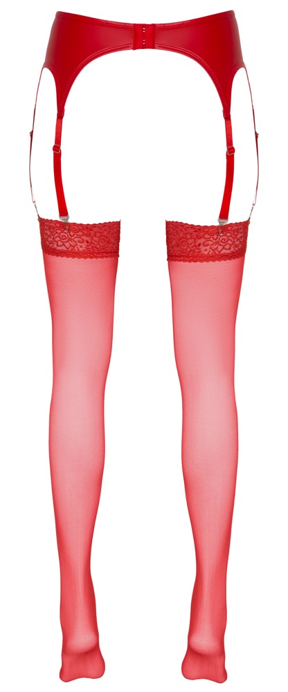 Must-have für Verführerinnen! Seidige Straps-Strümpfe zum Anclipsen an den Strapsgurt. Ein absoluter Hingucker in feurigem Rot und mit 7 cm breiter Spitze. 20 den. Oeko-Tex zertifiziert. 95% Polyamid, 5% Elasthan.